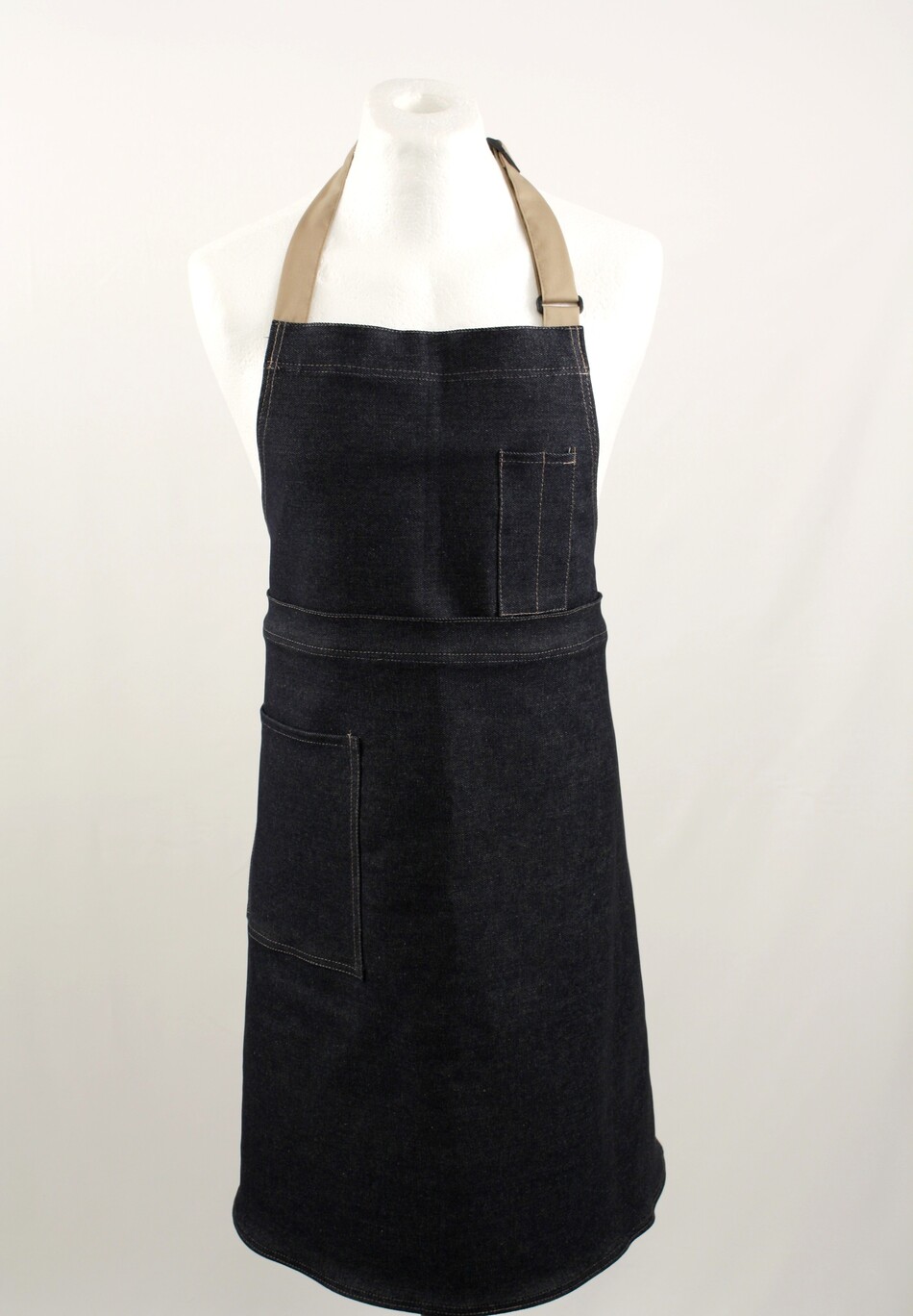 The versatile apron can be worn as a bib apron or folded down into a waist apron to suit all uses and needs whether that be in the kitchen or front of house.