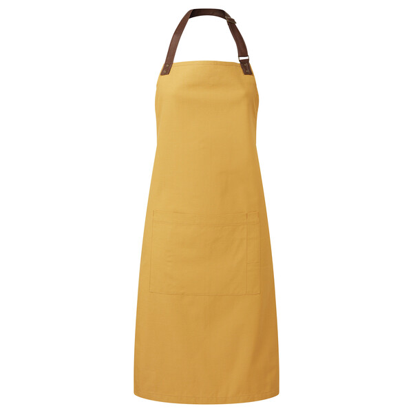 Yarn-dyed cotton threads create an attractive contrast effect. A self-fabric tie can be looped through and secured in place using double D-ring at the waist. Faux leather features for decoration and practicality finish off this contemporary apron.
