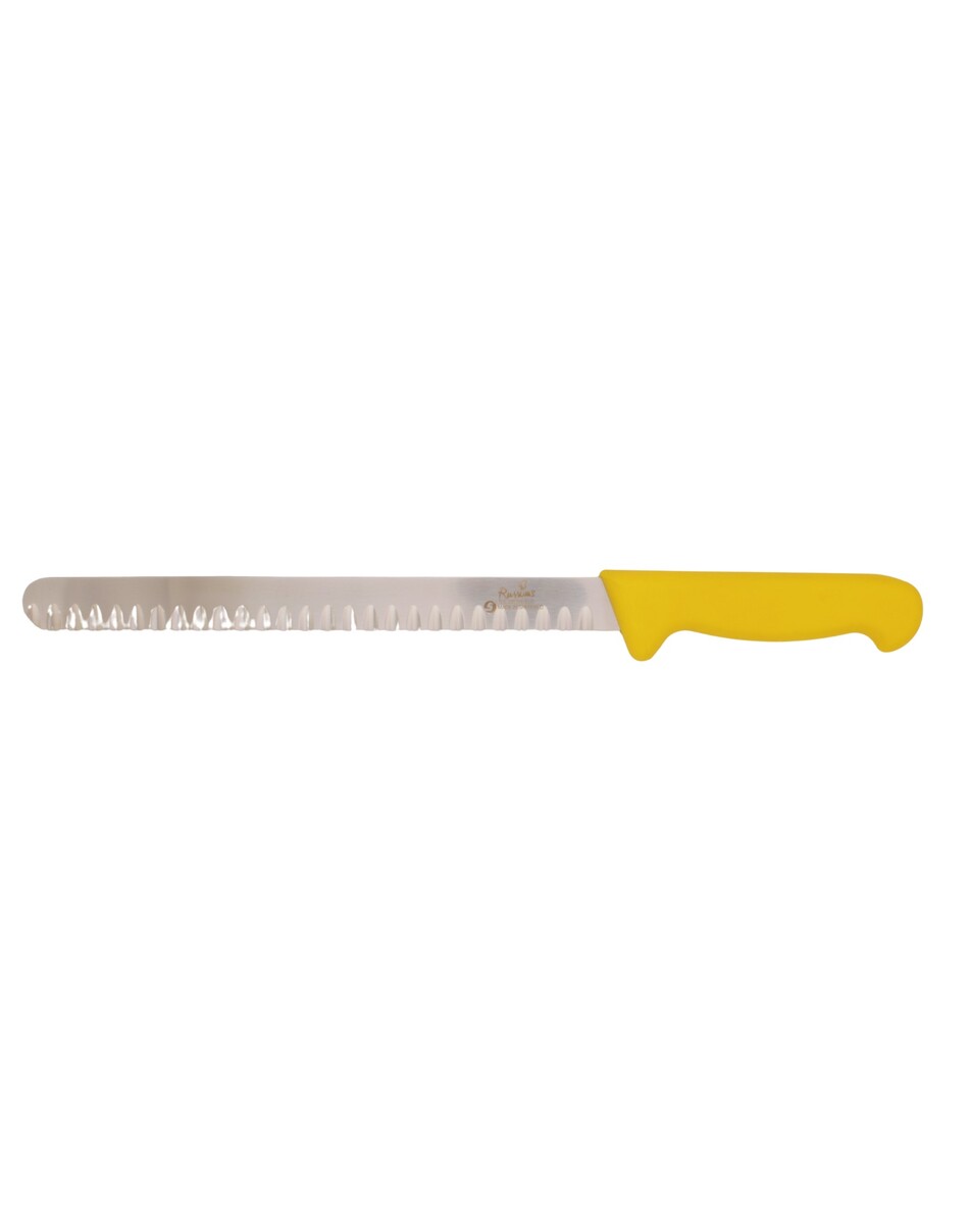 Smithfield 25cm Scalloped Slicer Yellow Samprene Handle