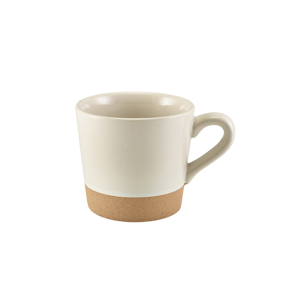 The Genware Kava White Stoneware Coffee Cup embodies simplicity and elegance, perfect for enhancing any dining experience with it's clean and timless design. Crafted from high-quality stoneware, it features an off-white glaze accented by an unglazed edge and base, creating a striking contrast.