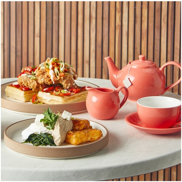 Kava Stoneware features a soft off-white glaze with an unglazed edge and base, creating a striking contrast that enhances food presentation. It's sleek design blends style and function, perfect for trendy bistros, cafes, and restaurants.