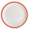 Virtually unbreakable 17cm plate in white with a solid colour band around the rim.