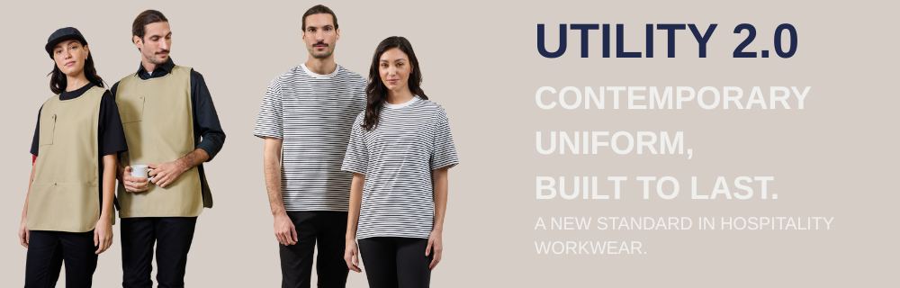 Utility 2.0 is a modern workwear collection designed for today’s hospitality environments, where teams are visible, fast-moving, and working in contemporary spaces. Drawing inspiration from classic workwear and the energy of modern food and coffee culture, the range combines clean, timeless silhouettes with durable, hard-wearing fabrics built for daily use.